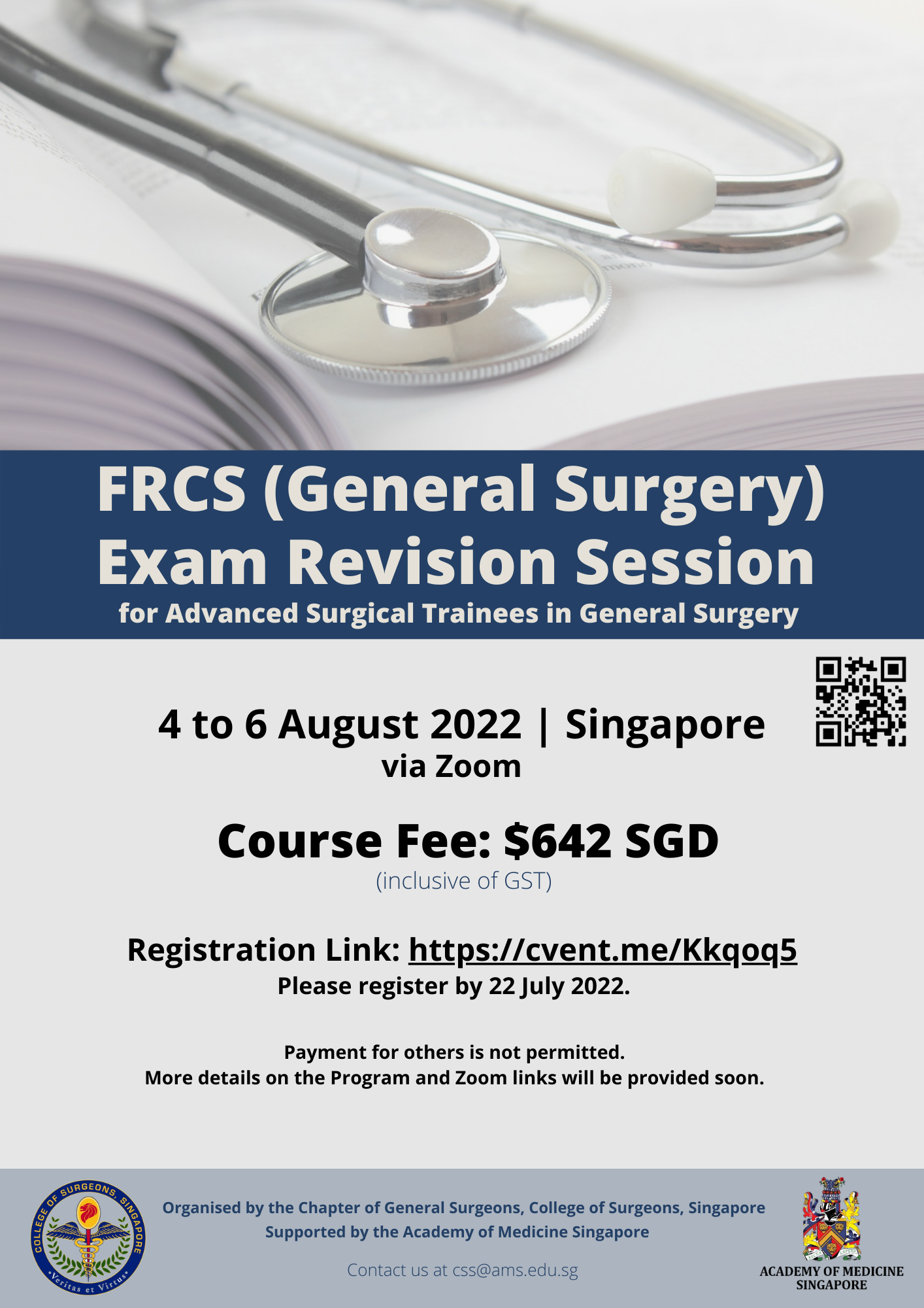 Please contact the Secretariat of the Chapter of Cardiothoracic Surgeons for more details via email: css@ams.edu.sg. Thank you,