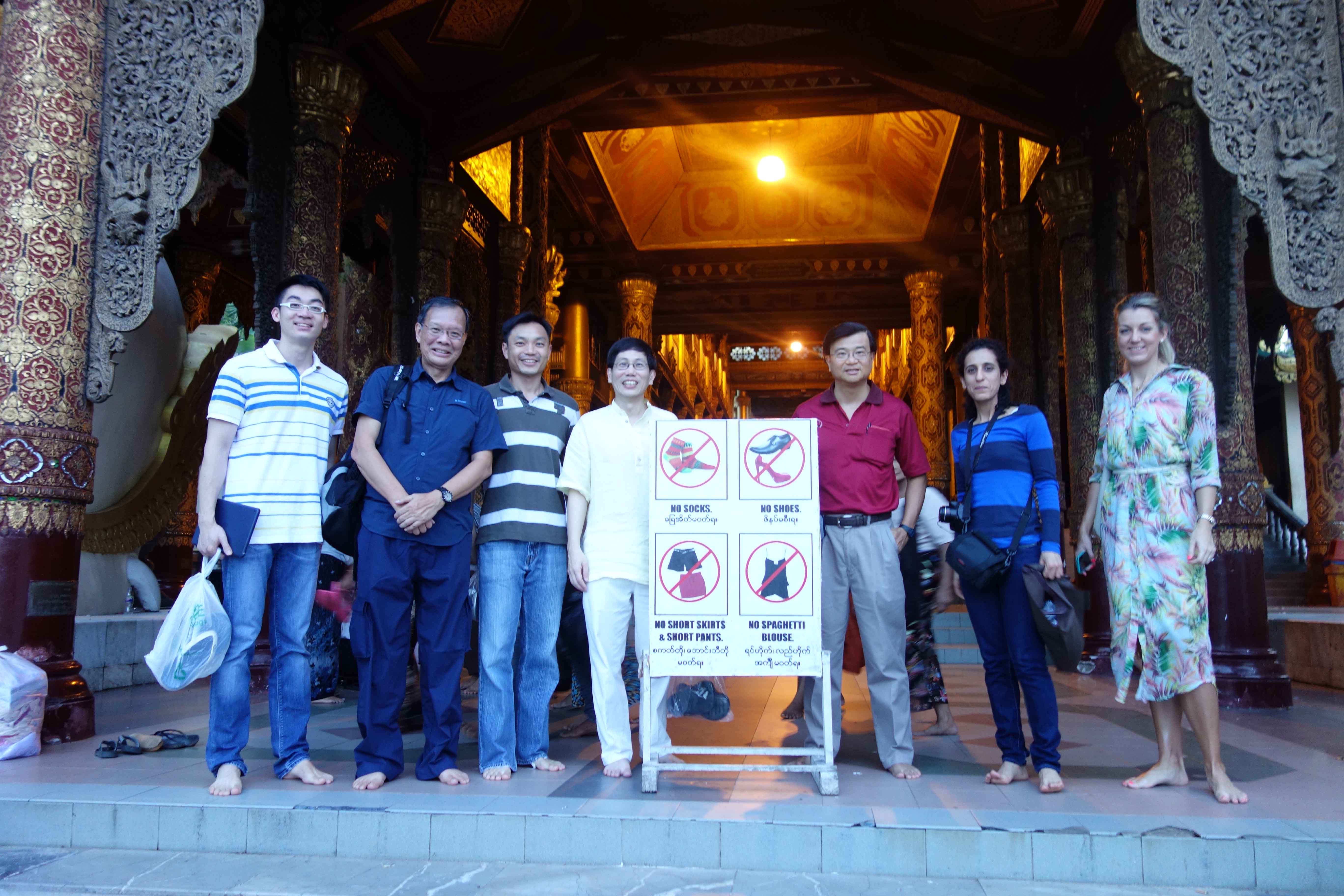 The Singapore delegation in high spirits while enjoying a tour of the Shwedagon Pagoda.